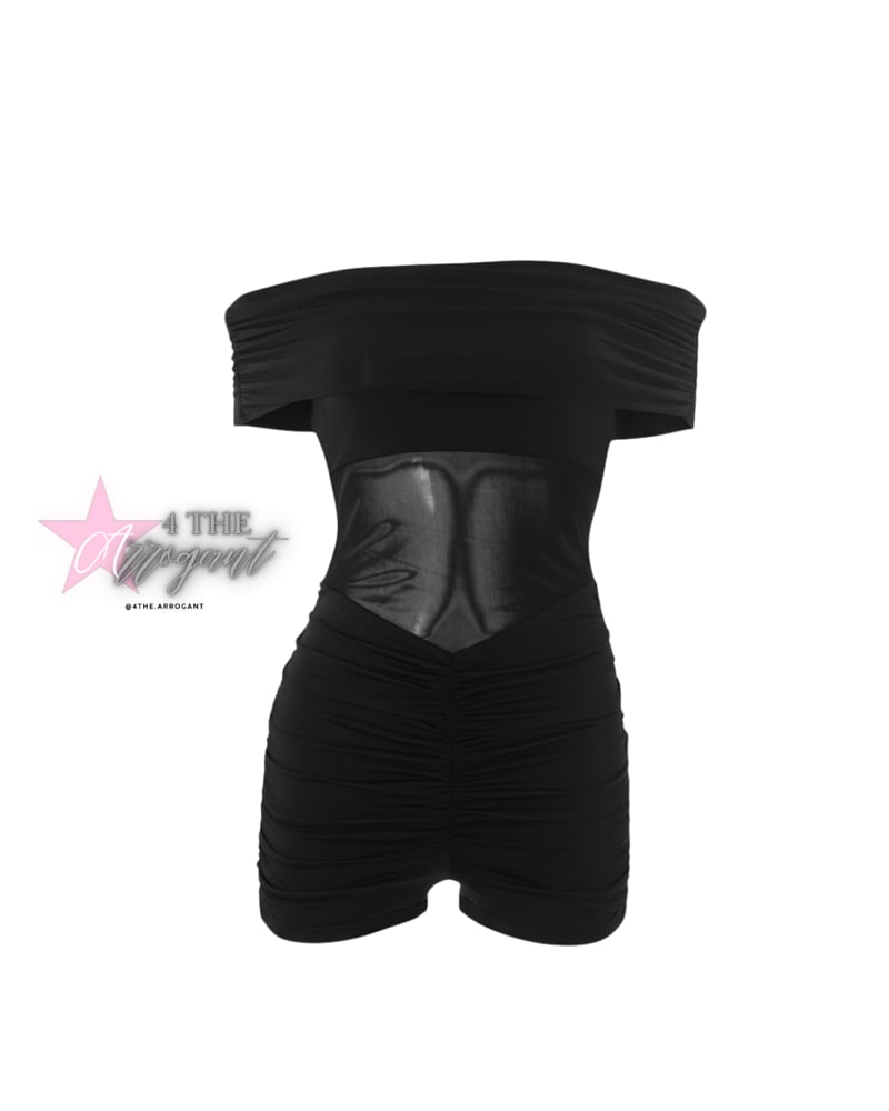 Black romper with mesh details . Super stretchy material